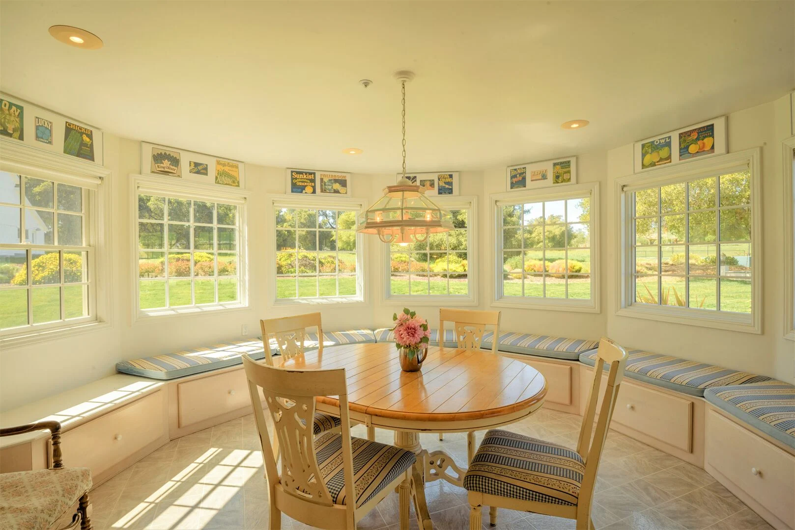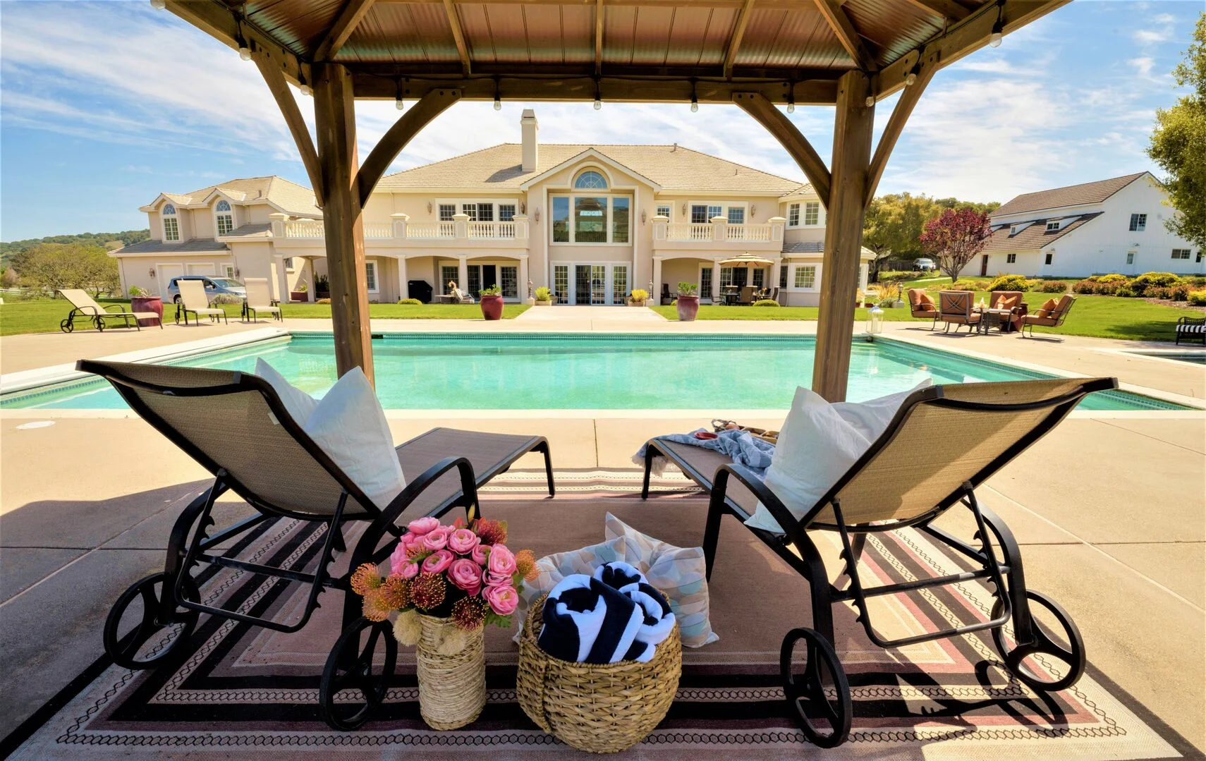 Outside, the meticulously landscaped grounds feature a sparkling pool, hot tub, and several outdoor living spaces, including a built-in outdoor kitchen and dining area for all sorts of entertaining.