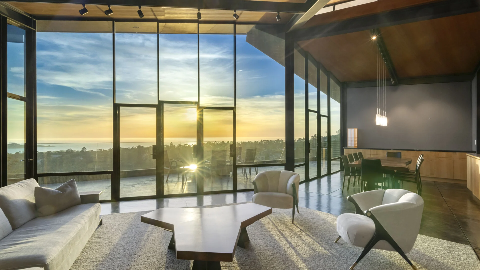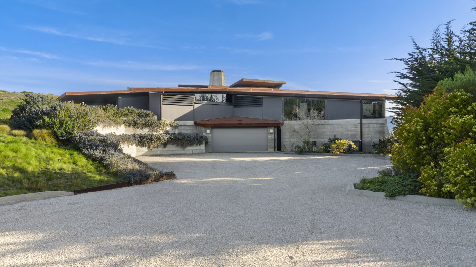 Nestled on an expansive 8.39-acre lot in Carmel, California, The Scaramanga Estate is a contemporary masterpiece that seamlessly blends modern design with natural beauty. This 3,400-square-foot residence features 3 bedrooms and 4 bathrooms, offering a spacious and luxurious living environment. The home’s architecture is defined by its use of concrete, steel, and glass, creating a sleek and sophisticated aesthetic. Floor-to-ceiling windows provide breathtaking 270-degree views of the Pacific Ocean, Point Lobos, the Santa Lucia Mountains, and Carmel Valley, allowing natural light to flood the interior and offering panoramic vistas from nearly every room. The open-concept living spaces are designed for both comfort and style, featuring high-end finishes and modern amenities. The expansive master suite offers a private retreat with its own set of stunning views and a spa-like bathroom. Located in the prestigious community of Carmel, this home offers a rare opportunity to experience luxury living in one of California’s most sought-after locations. Its proximity to the charming town of Carmel-by-the-Sea, renowned golf courses such as Quail Lodge, Pebble Beach, Spy glass and Poppy hills.
